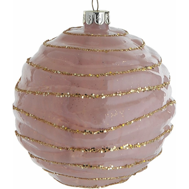 Ρόζ Γυάλινη Χριστουγεννιάτικη Μπάλα 10cm,Σέτ/4