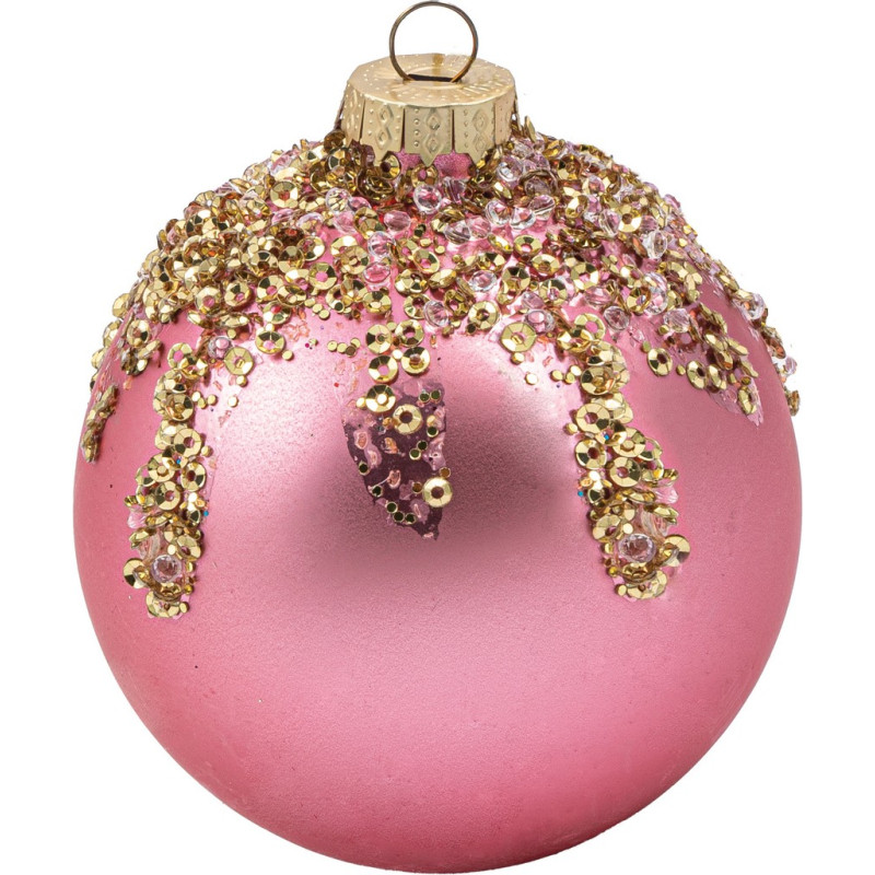 Ρόζ Γυάλινη Χριστουγεννιάτικη Μπάλα 8cm ,Σέτ/6