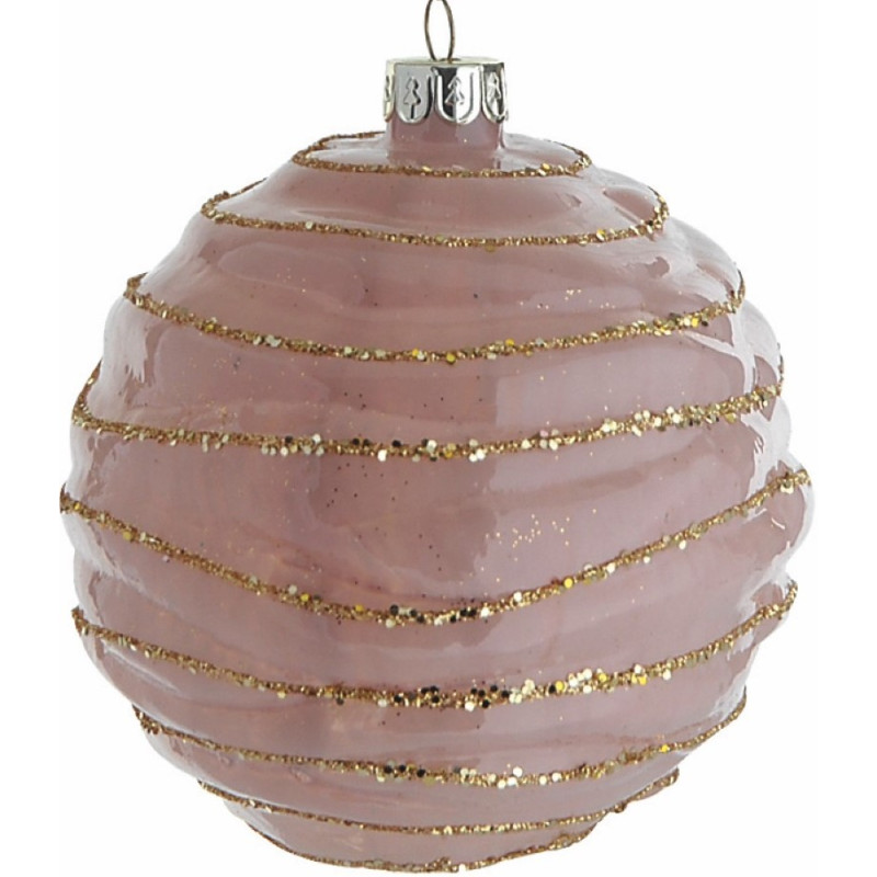 Ρόζ Γυάλινη Χριστουγεννιάτικη Μπάλα 8cm,Σέτ/6
