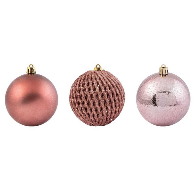 Ρόζ Χριστουγεννιάτικες Μπάλες 3 Χρώματα ,Σέτ 12 Τεμαχίων 8cm ,3 Σχέδια