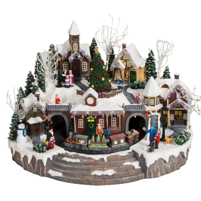 Χριστουγεννιάτικο Διακοσμητικό Όπτικαλ Χωριό Με Μουσική Και Κίνηση 4,5V , 46,5 x 35 x 33cm