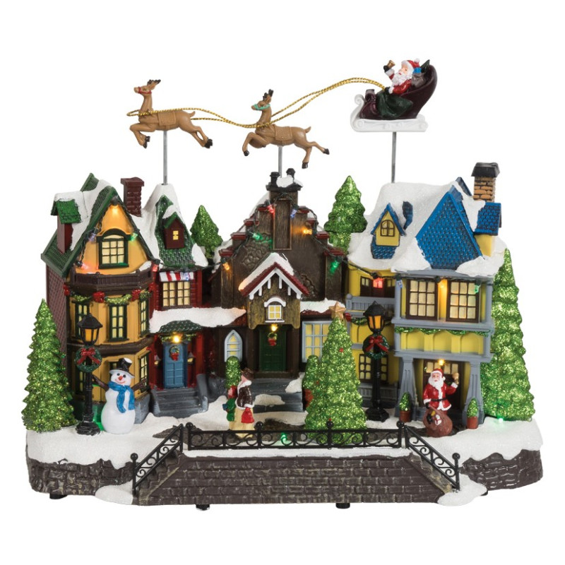 Χριστουγεννιάτικο Διακοσμητικό Όπτικαλ Χωριό Με Μουσική Και Κίνηση Μπαταρίας 39 x 20 x 33cm