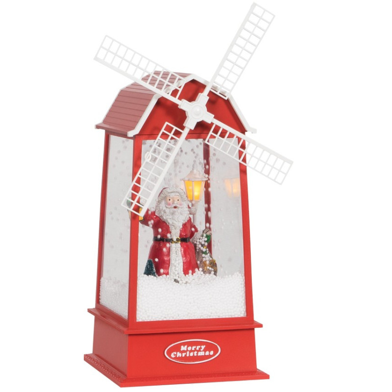 Χριστουγεννιάτικος Διακοσμητικός Μύλος Με Φώς , Μουσική Και Χιόνι Με Καλώδιο Usb 16 x 16 x 38,5cm