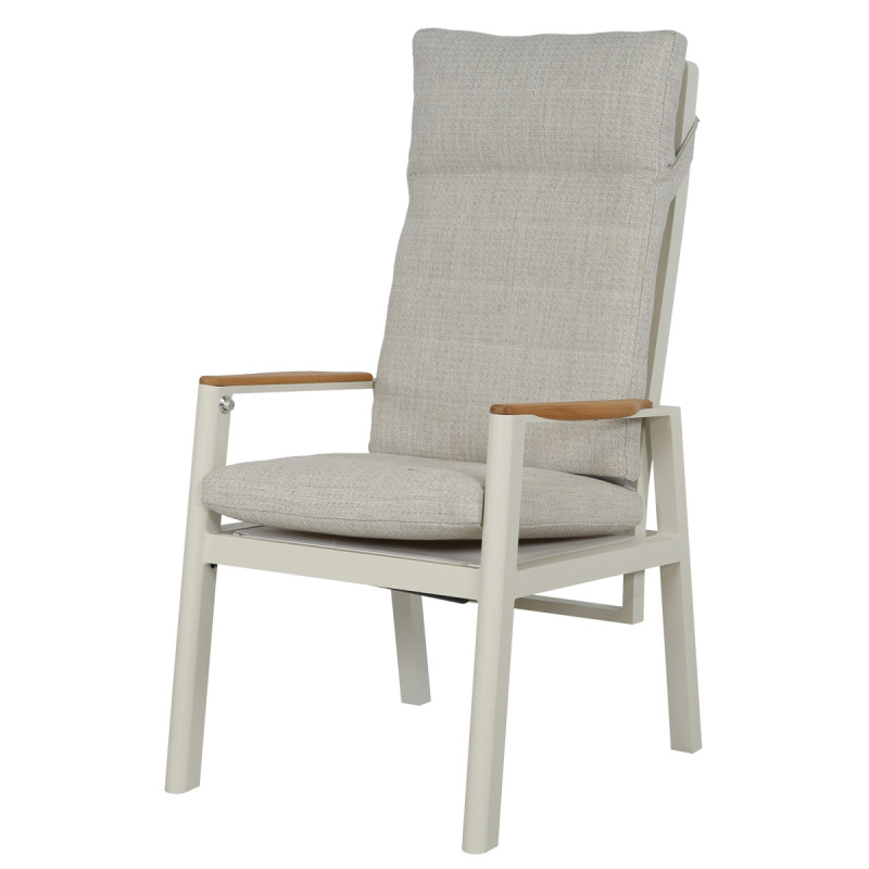 Πολυθρόνα Αλουμινίου Με Ξύλο Teak Στα Μπράτσα Και Μηχανισμό Αναδίπλωσης Στην Πλάτη Με Μαξιλάρι
