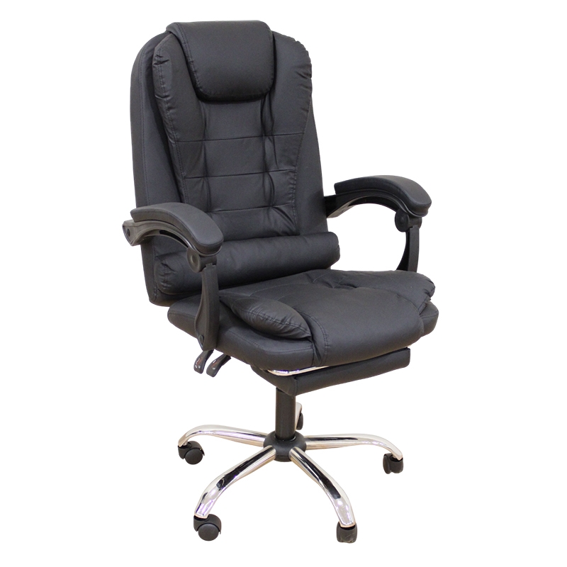 A9949 πολυθρόνα διευθυντική ξεκούραστη με άνετο κάθισμα σε μαύρο PVC.Τα μπράτσα του είναι πολυπροπυλενίου,φαρδιά με μαξιλαράκι για άνετο στήριγμα των χεριών.Διαθέτει επεκτεινόμενο υποπόδιο για μεγαλύτερη άνεση και πόδι χρωμίου για μεγαλύτερη αντοχή.