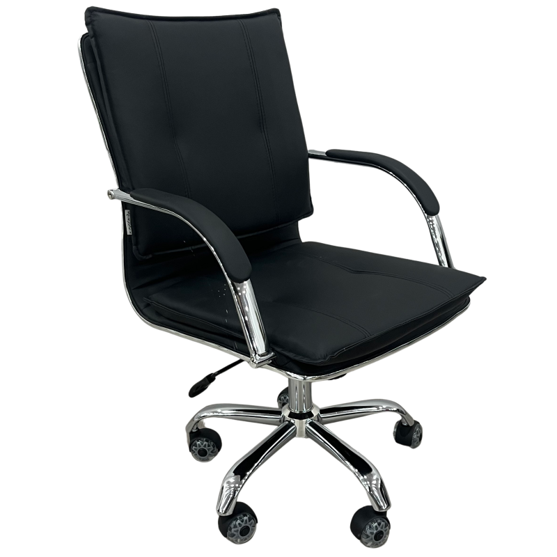 μηχανισμό synchro ανάκλησης πλάτης-καθίσματος ροδάκια σιλικόνης υψηλής ποιότητας βάση και μπράτσα μεταλλικά χρωμιομένα πλάτη κάθισμα και μπράτσα από δερματίνη pu Χώρα Προέλευσης : Kίνα Διαστάσεις Μήκος:70,00cm Πλάτος:60,00cm Υψος:126,00cm