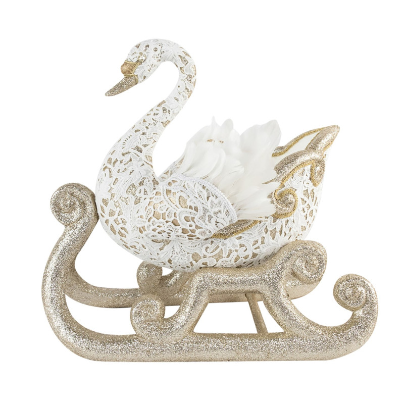 Χριστουγεννιάτικος Διακοσμητικός Κύκνος Σε Έλκυθρο 54 x 33 x 54(h)cm