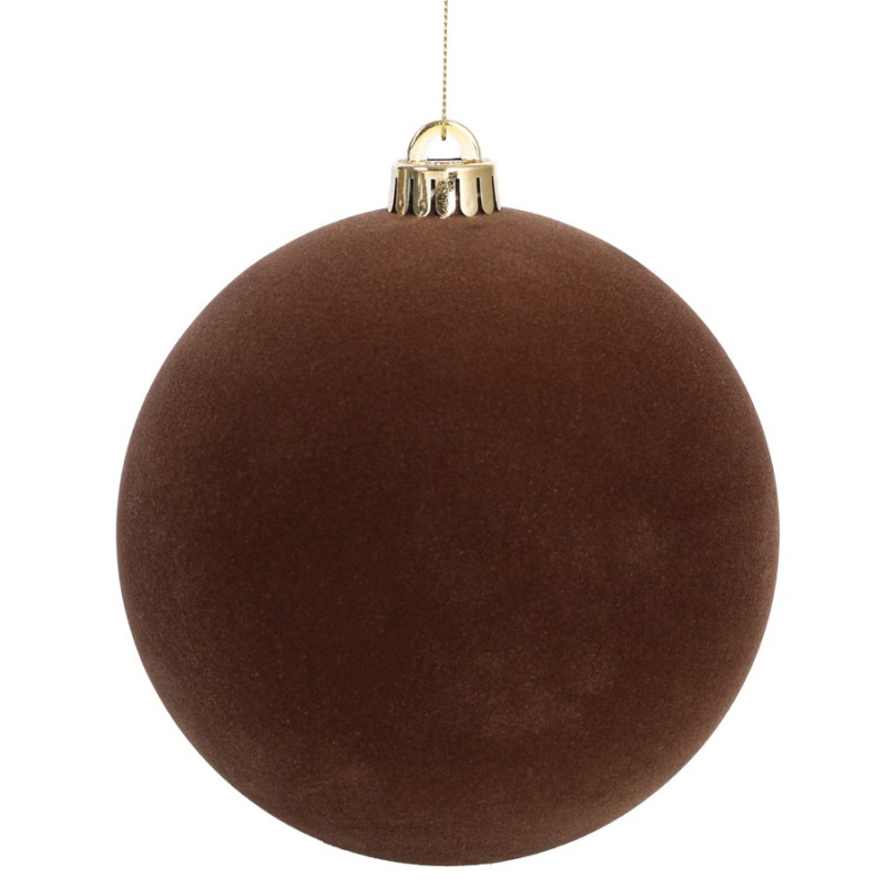 Καφέ Βελουτέ Πλαστική Χριστουγεννιάτικη Μπάλα 10cm,Σέτ/4 Τεμαχίων