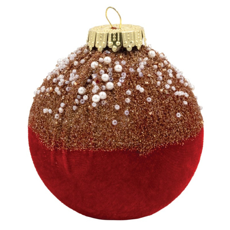 Κόκκινη Βελουτέ Πλαστική Χριστουγεννιάτικη Μπάλα 12cm,Σέτ/2 Τεμαχίων