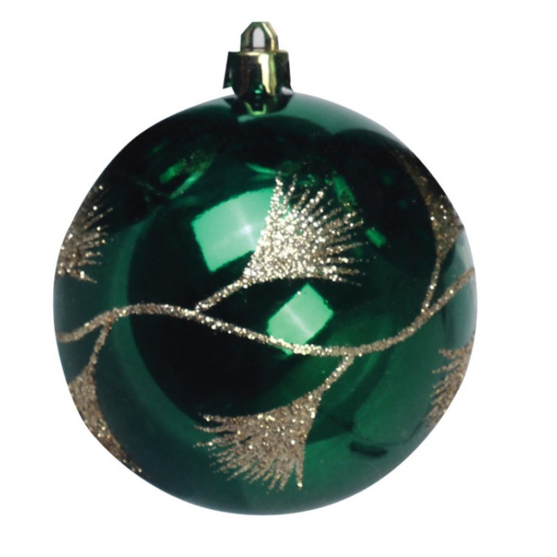 Πράσινη Γυαλιστερή Πλαστική Χριστουγεννιάτικη Μπάλα 10cm ,Σέτ/4