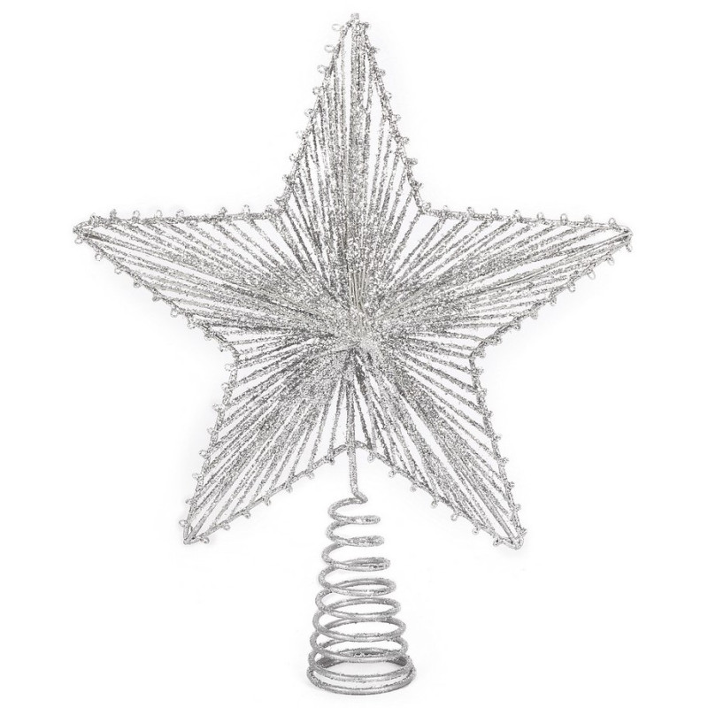 Ασημί Γκλίττερ Αστέρι Κορυφή Δέντρου 25 x 30cm