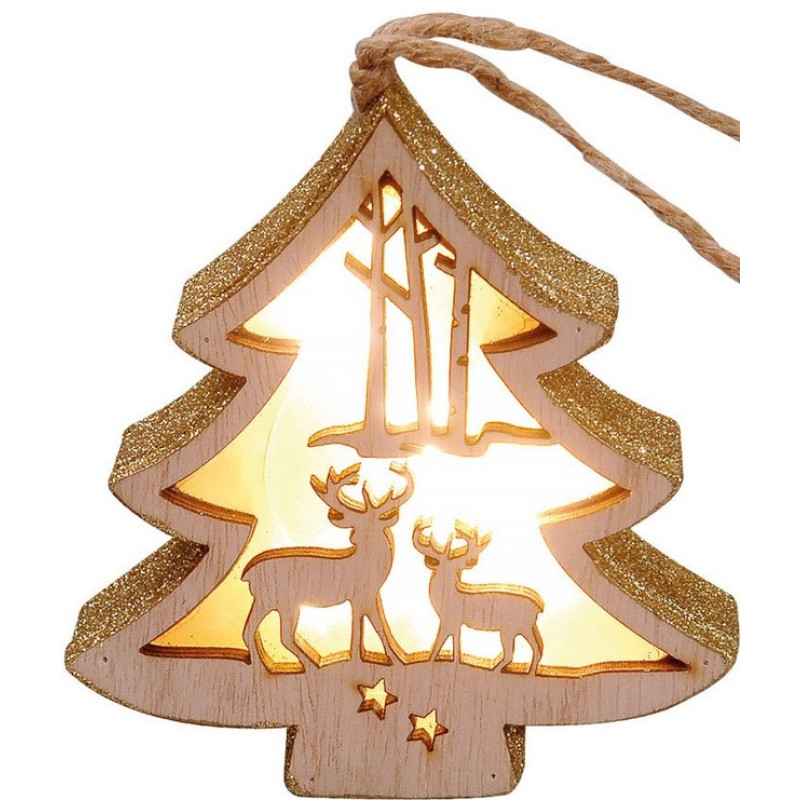 Ξύλινο Διακοσμητικό Δέντρο Με Led Φωτισμό Μπαταρίας ,12(H) x 12cm