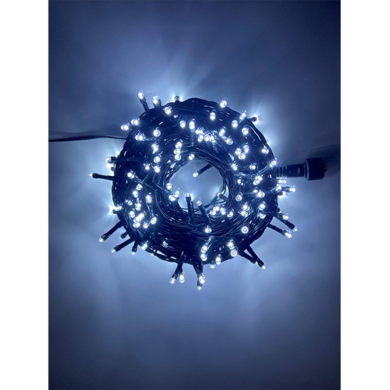 Χριστουγεννιάτικα φωτάκια led 300L IP44 με μετασχηματιστή 31V σε ψυχρό λευκό (cool white) χρώμα με 8 προγράμματα λειτουργίας. Είναι επεκτεινόμενα και έχουν μήκος 15m με επιπλέον 3m τροφοδοσίας. Η συσκευασία περιέχει 24 τεμάχια.