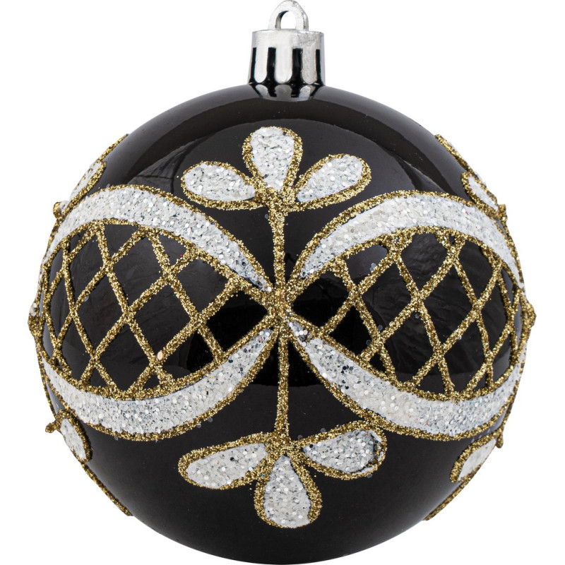 Μάυρη Πλαστική Χριστουγεννιάτικη Μπάλα 8cm,Σέτ/6