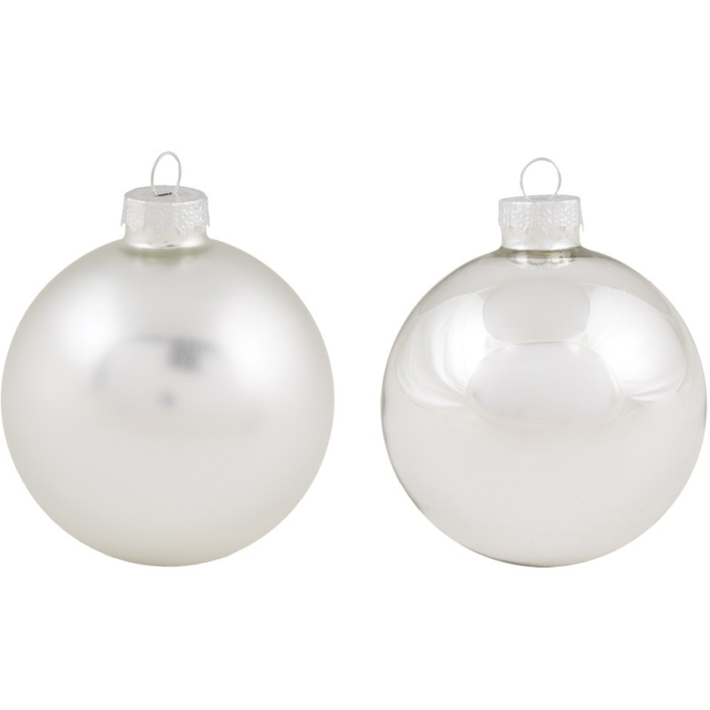 Ασημί Γυάλινη Χριστουγεννιάτικη Μπάλα Μάτ Και Γυαλιστερή 8cm , Σέτ/6 Τεμαχίων
