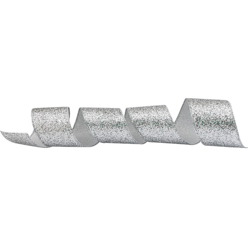 Ασημί Χριστουγεννιάτικη Κορδέλα Με Γκλίτερ 8,5 Μέτρα (9 yards)