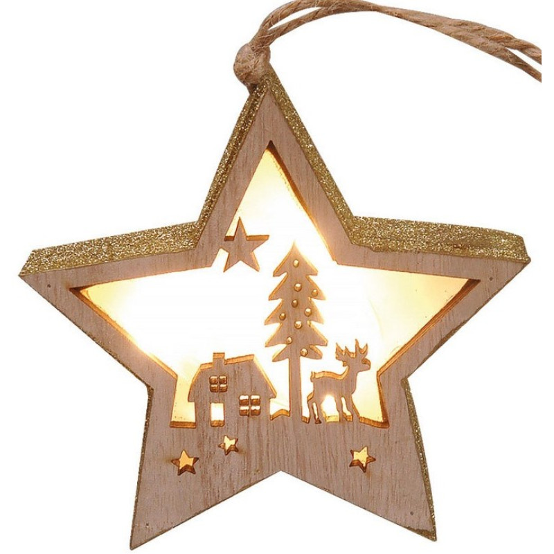 Ξύλινο Διακοσμητικό Αστέρι Με Led Φωτισμό Μπαταρίας ,12(H) x 12cm